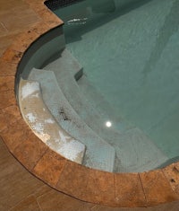 PLEASE DO NOT USE SUN TAN OIL. This causes a build up of product on the swimming pool liner which can take days to remove. Please use the outdoor shower prior to entering the pool and on exit. If Tanning OIL is used and the pool liner is effected then there will be an additional cost to you due the additional costs to clean the pool and filters.